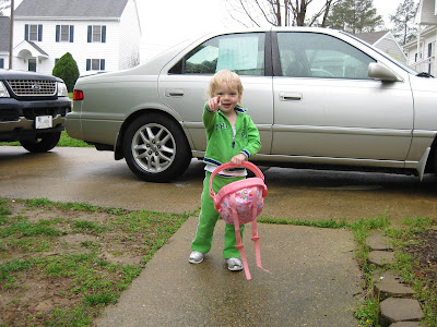At Robbie's first doctor's appointment, Jocelyn insisted on carrying her baby too. Here she is with the carrier...