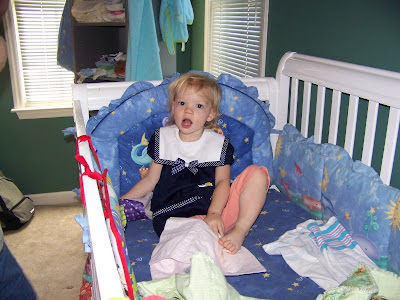 Hanging out in her old crib...