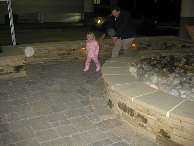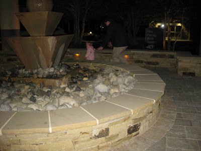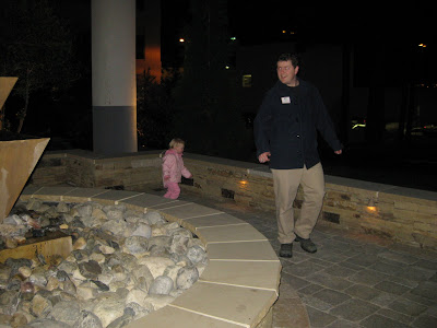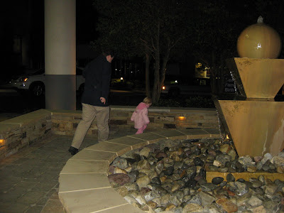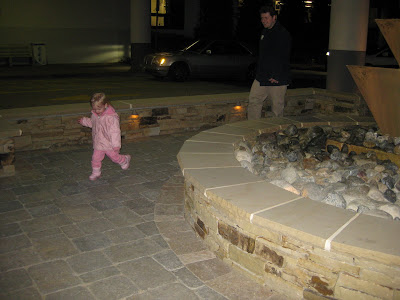 When we visited our friends John and Kristen and their little girl Hannah at Rex in early March, I completely forgot to take any pictures with the new little family. Boo! (Hey, Kristen, can you email me the one John took of me holding Hannah and Jocelyn? No rush! I know you have your hands full right now.) However, I did remember to take pictures at Jocelyn's favorite hospital place ... the fountain! First Lee chased Jocelyn, and then she turned the tables on him. Fun!