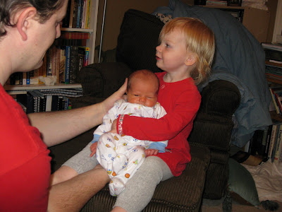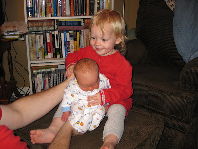 Jocelyn has christened herself "big baby" and Robbie "little baby" (or sometimes just "baby" or "Robbie baby"). Here they are sharing some love four days after "little baby" was born!