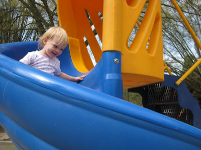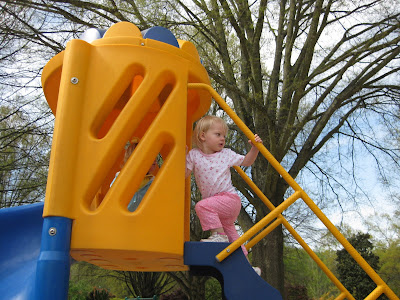 We went to Pullen Park for the first time on Good Friday. It was crazy busy, so we didn't check out the train or boats or carousel, but we'll definitely do so in the future! Jocelyn had plenty of fun without any of that, though!