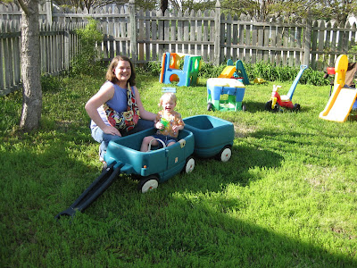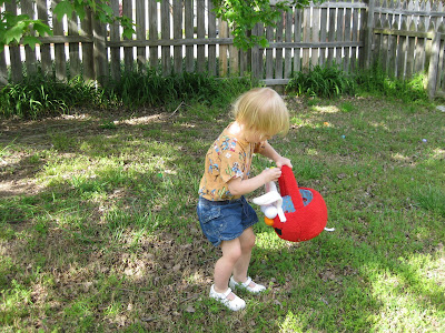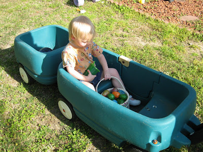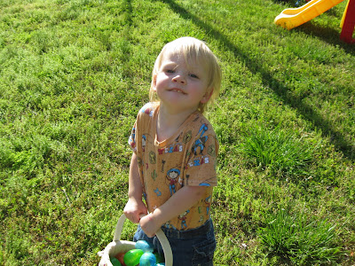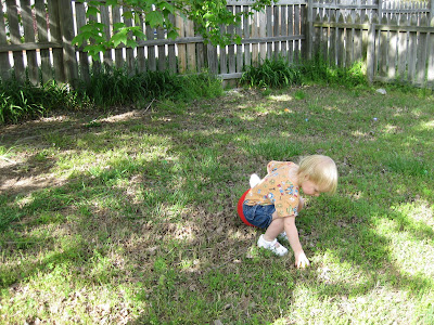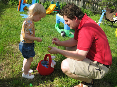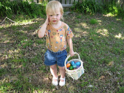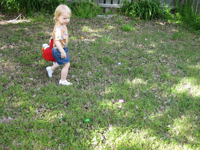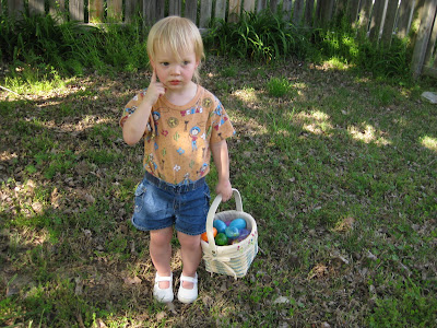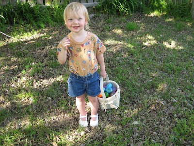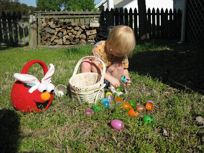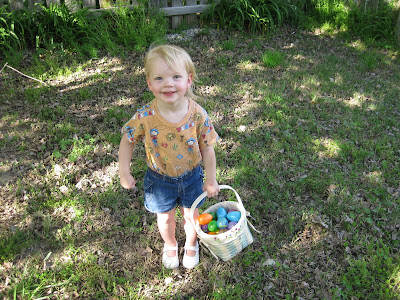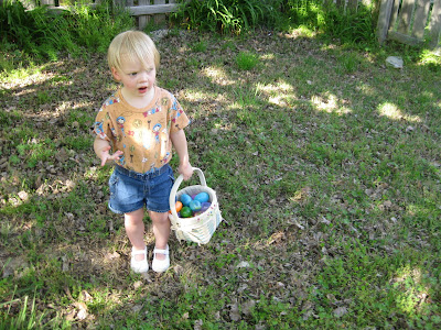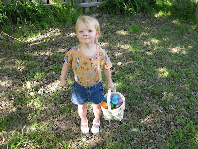 Since Easter was a tiring day, we didn't do our Easter egg hunt until a week or more later (can't remember exactly when!). Jocelyn thought it was amazing, and I think she would be up for an Easter egg hunt every week if that was an option!