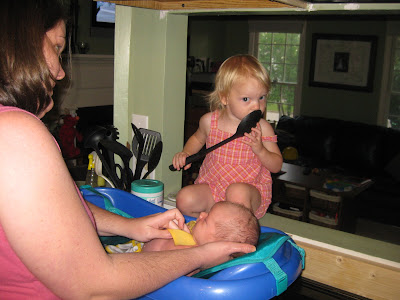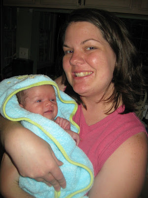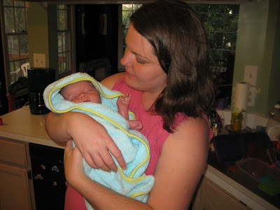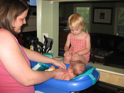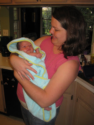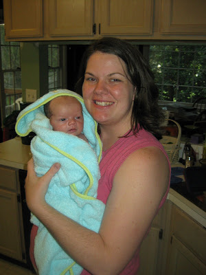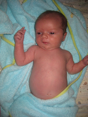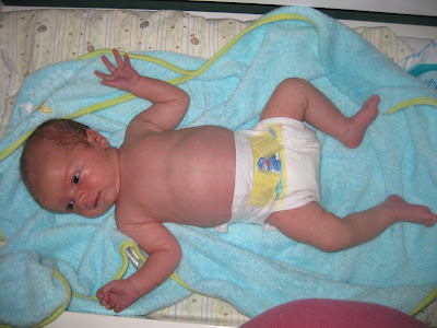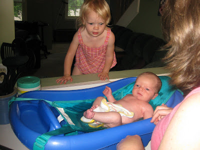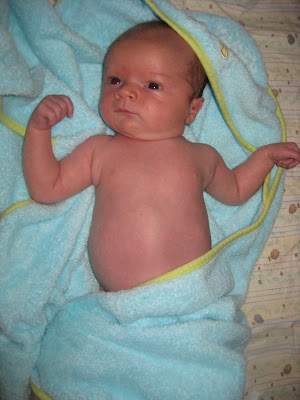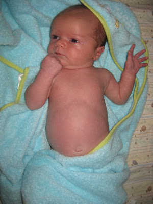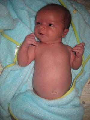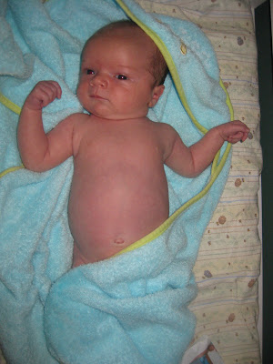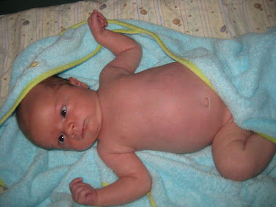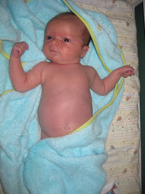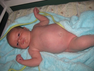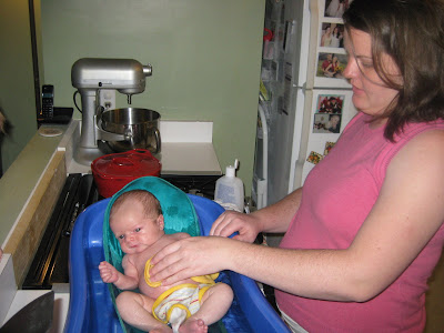 It took forever for Robbie's umbilical cord stump to fall off. He was just shy of four weeks old, and I was excited to finally be able to give him a bath. Here's the documentation of the event!