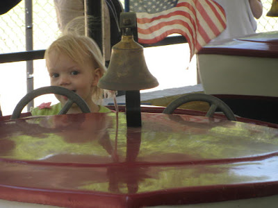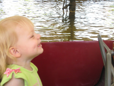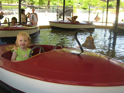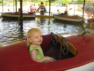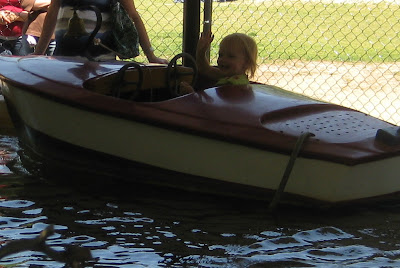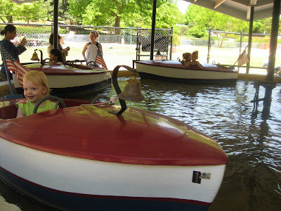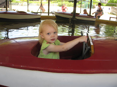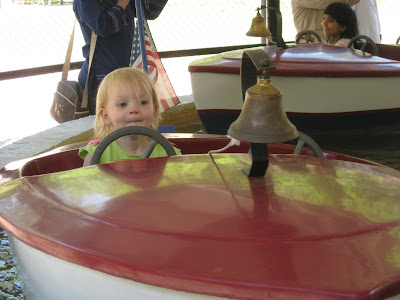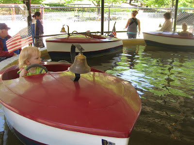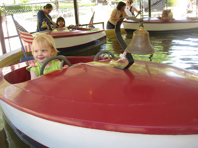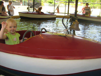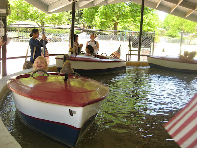 Jocelyn loved the boats at the park so much that she tried to scoot to the far side of the boat so we couldn't reach her to take her out. We dealt with that bit o' disobedience and got her out, but she probably would have stayed and ridden around all day if we had allowed it!