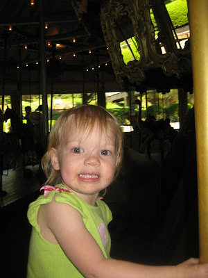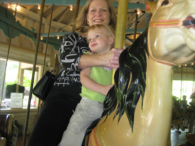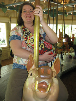 This isn't the greatest shot of me, but since it's the only one of my and Robbie's first ride on the carousel, I'll include it anyway!