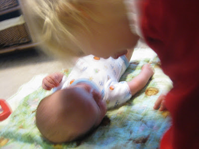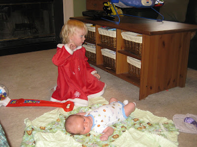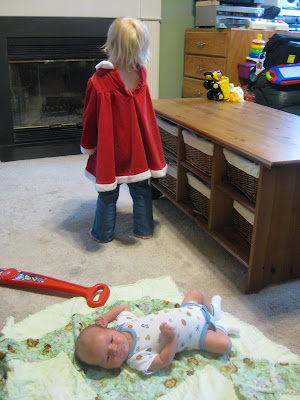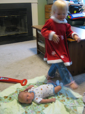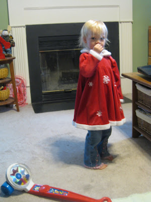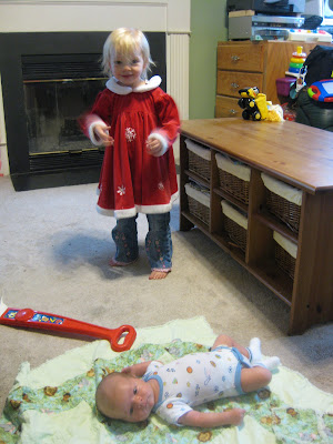 I can still wear my Christmas dress! With jeans under it too! (Yep, this was one of our April summery days in the 90s. Jocelyn really wanted to wear the dress, and we weren't going anywhere, so I said yes!)