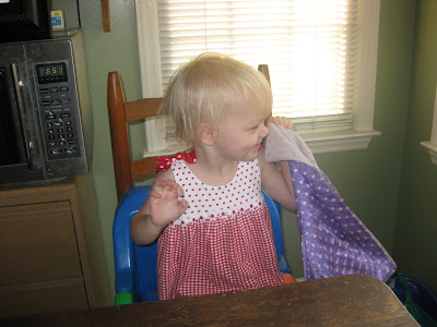 The minky is still her favorite possession. It is a toy, a cape, a lovey, a baby; simply put, it is whatever her imagination can turn it into! I was nervous this evening that it was gone. I felt silly praying that God would bring her minky home safely ... but, boy, was I praying! Heather has made her additional minkies, and Jocelyn has deemed other loveys "mimis" (her word for minky) as well. However, when she gets hurt or tired, it's the purple minky she wants, and nothing else will do.