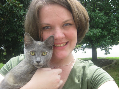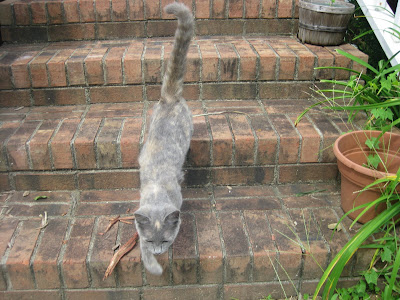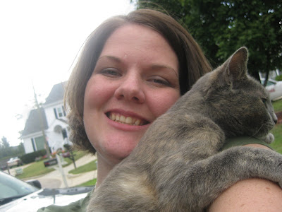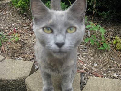 not a crazy cat lady. No, not me. We just have three inside and one in the yard. And the one in the yard isn't ours because it's against our homeowner's association rules to have outdoor pets that aren't contained to your yard. Thus the title of this post: she is not our kitten; she is merely our yard dweller. I mean, you can't be held responsible for what creatures dwell in your yard, can you? And I'll take this over the snakes that have been cropping up in the yards of many of my Raleigh friends!