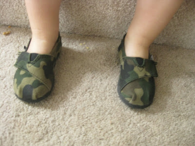 (But, honestly, it's not because of global consciousness, though I do dig that another kid has a pair of shoes because I bought these for Little Man. Our primary reason for buying these was a ginormous sale I found when I was able to get them for about ten bucks. I've been waiting months for them to fit. Aren't they adorable?!?)